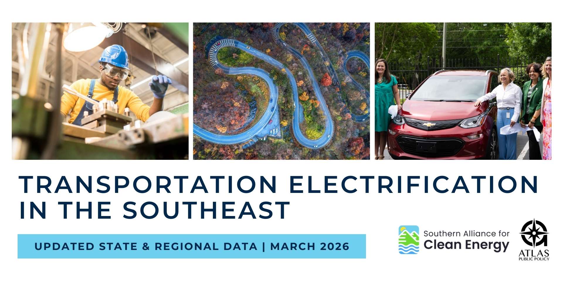 The sixth annual “Transportation Electrification in the Southeast” report, published on September 8, 2025 by Atlas Public Policy in collaboration with the Southern Alliance for Clean Energy (SACE), is a snapshot of strong EV market momentum in the Southeast at a pivotal political inflection point. In our March 2026 update, we include supplemental state and regional two-pagers that capture complete data from January through December 2025.